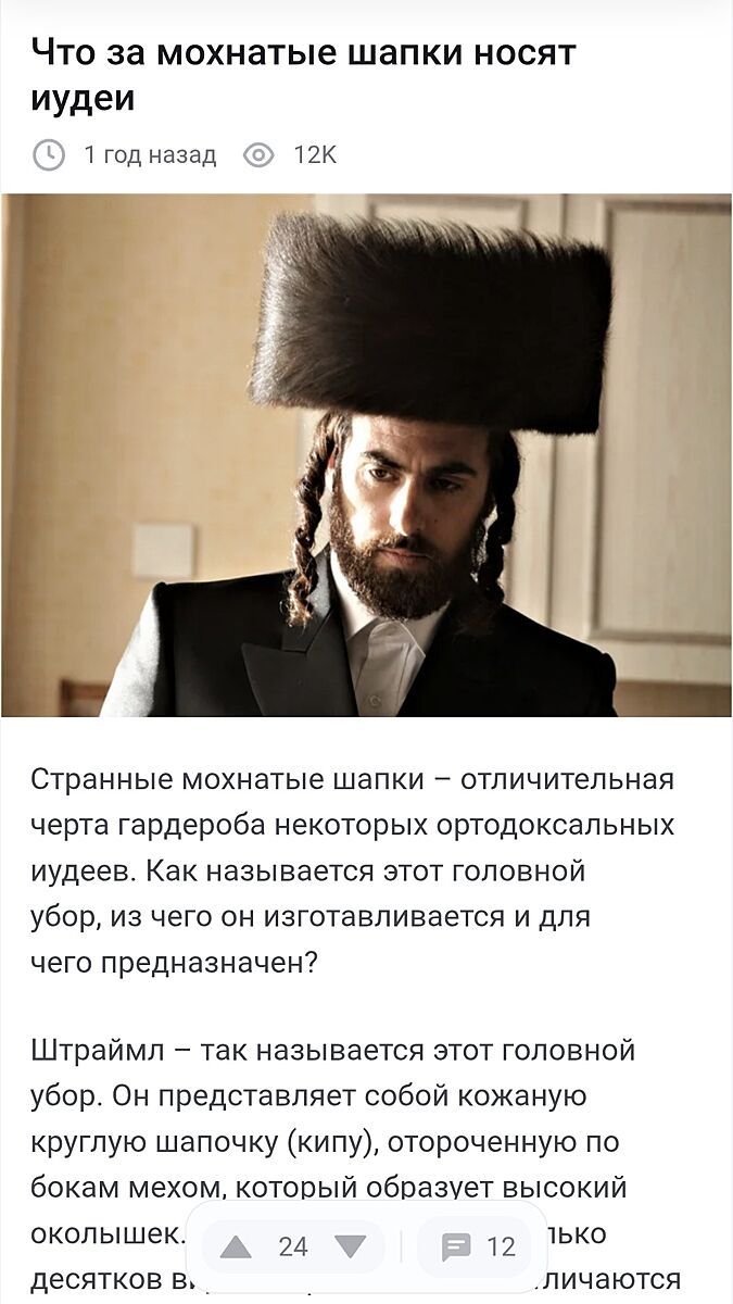 А вы знаете, что шапка меховая прилизаная такая, которую на праздники надевают ортодоксальные евреи стоит кучу денег, в тысячах долл. И некоторые семьи, часто многодетные берут кредит чтобы папе эту шапку купить...