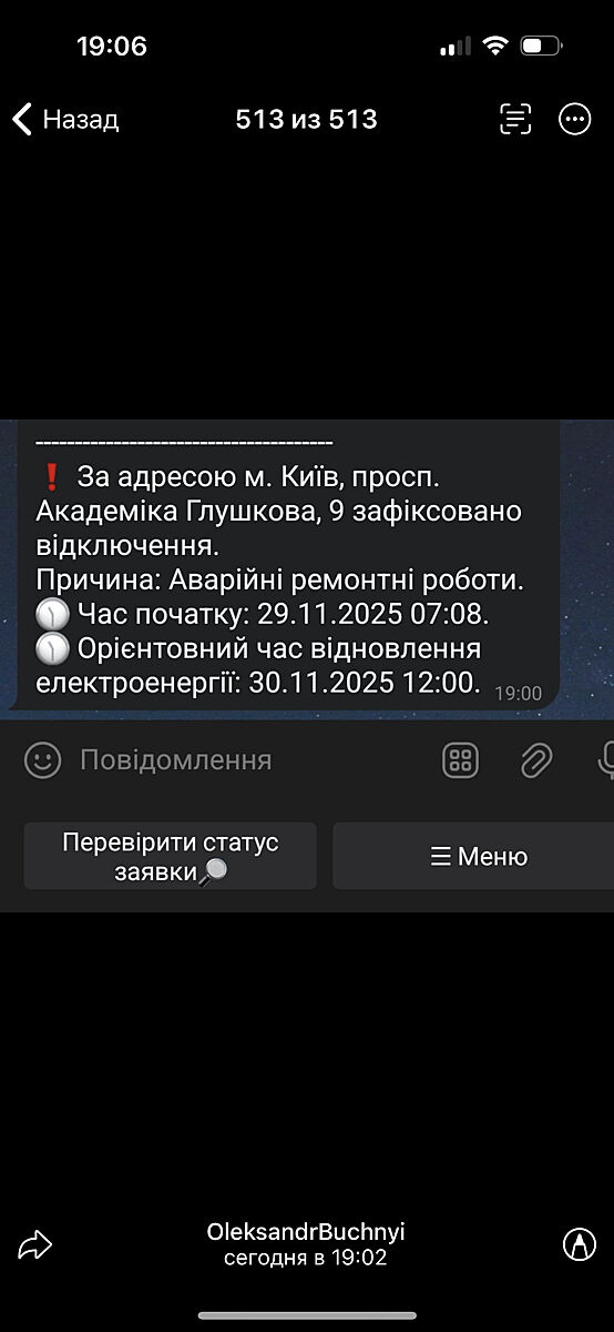 Голосіівський р-н - нема( Дтек пише, що не буде до 12:00 завтра. Виходить 29 годин без світла