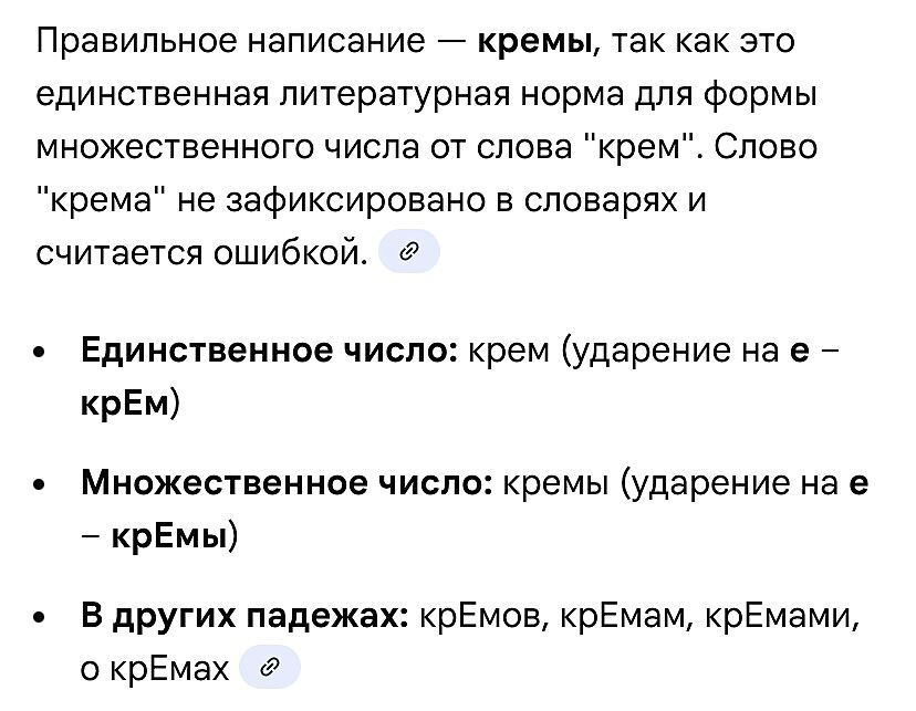 Ви така грамотійка, що навіть не в курсі, що російською правильно як раз кремьі, а не крема. Зазирніть у словник.