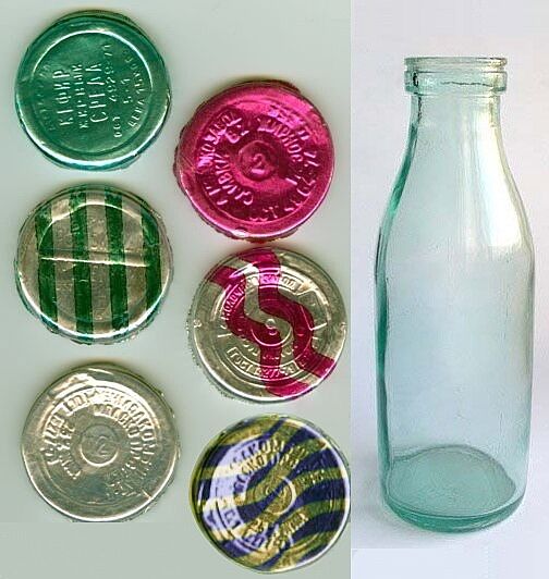 чи у всіх містах колір фольги був однаковий на кефірі, ряжанці та іншому? здається, на деяких продуктах були смугасті кришечки - на кефірі біла у зелену смужку, на ряжанці - біла у коричневу, питні вершки були (коли були, звісно) під золотистою, а наріне і ацидофілін, які ми ніколи чомусь не купували, і я навіть не знаю, які вони на смак, під темно-рожевою, чи я неправильно пам´ятаю?