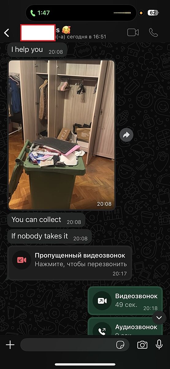 дело было так: утром она взяла чемодан с вещами и уехала к подруге. плакала пол дня и отходила от шока. Хочу заметить переписка с парнем, из-за которого скандал, это не ее партнёр по сексу, они давно пересекались по общим интересам, несколько раз и была романтическая переписка с намеками на отношения, и в тот вечер накануне в том числе, но это не важно). Потом она пришла в чувства, ее взяли под руку две подруги и поехали забирать еще часть вещей после вот этого фото (скрин 1), где в ящике для стекла кинул ее шубу, вещи, лекарства и сверху документы. выслал фото, она поехала забирать этот бак. Разбирала его сама и прям с него кидала все в багажник такси без пакетов. все вещи были в стекле. остальные вещи она не могла физически вывезти (вчера было 2 ходки), сегодня она еще раз ехала за вещами. ПОНИМАЕТЕ или нет?