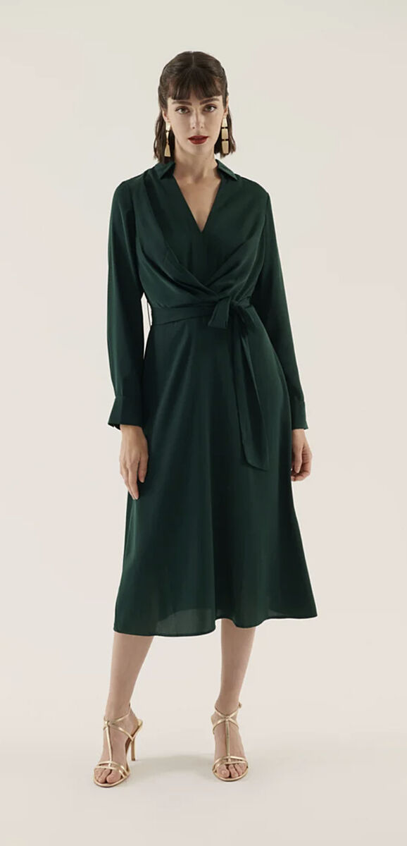 Ну у зелёного классический фасон. Я могу носить только такие- с отрезной талией, халатного типа на запахе или Т-образный силуэт. В остальных других я как бревно- талии у меня совсем нет. Поэтому выбор не велик. Ну и мне нравятся платья без рукавов, но зона подмышек уже не очень , не хочу светить ей