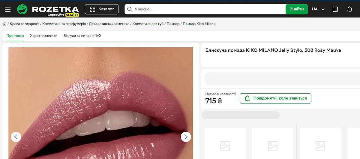 Почему с Советчицы переправляет реклама на товар Не в наличии?