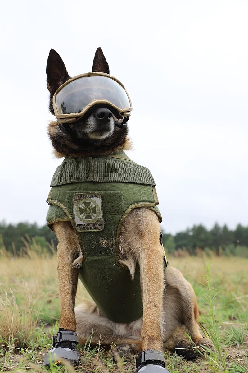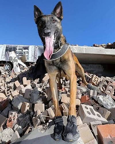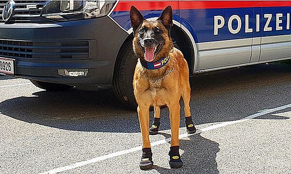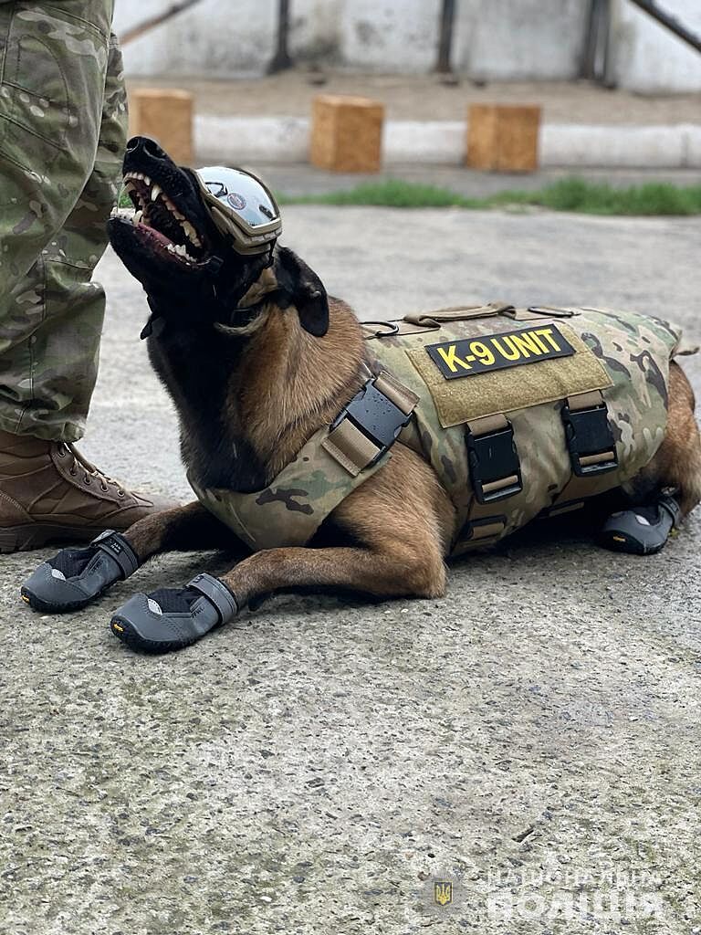 По асфальту в основном, при чем к теме фото служебных собак.