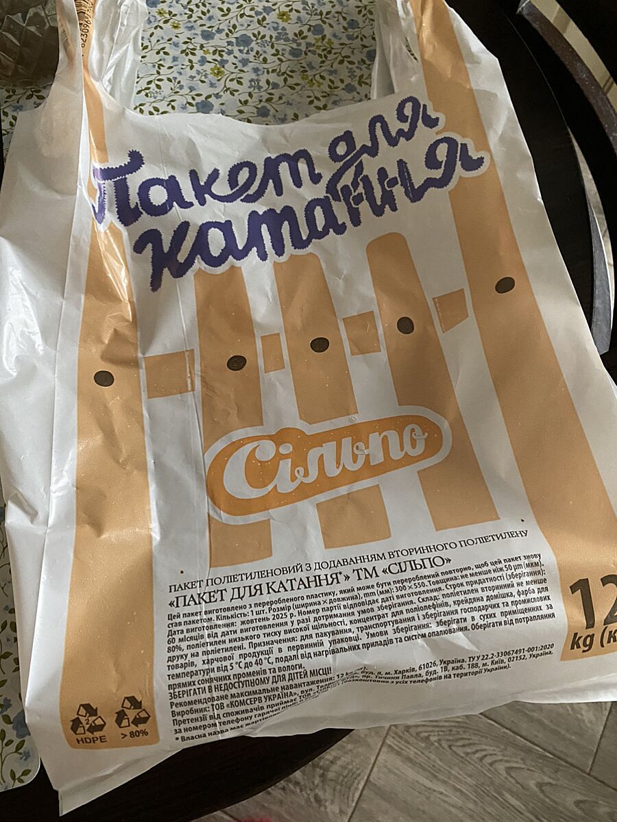 Я ещё со своими пакетами не ходила )) правда иногда хожу с Хорошевой сумкой , если там не буду покупать пакеты нужно же куда то мусор складывать . Этот пакет для мусора Золотым выходит .