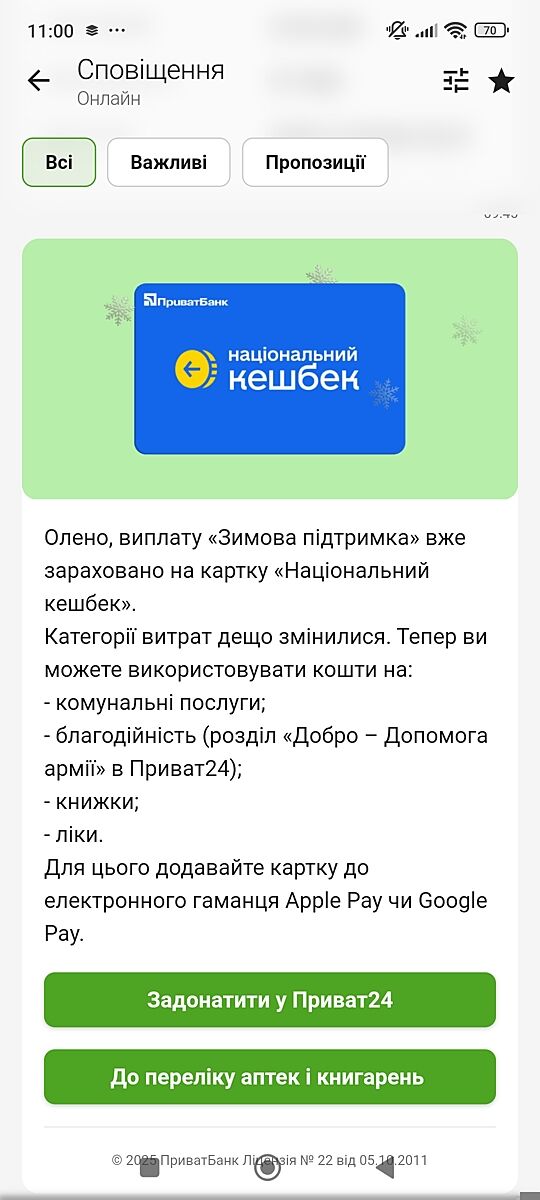 Вчора 3 тисячі прийшло, планую двічі комуналку заплатити.