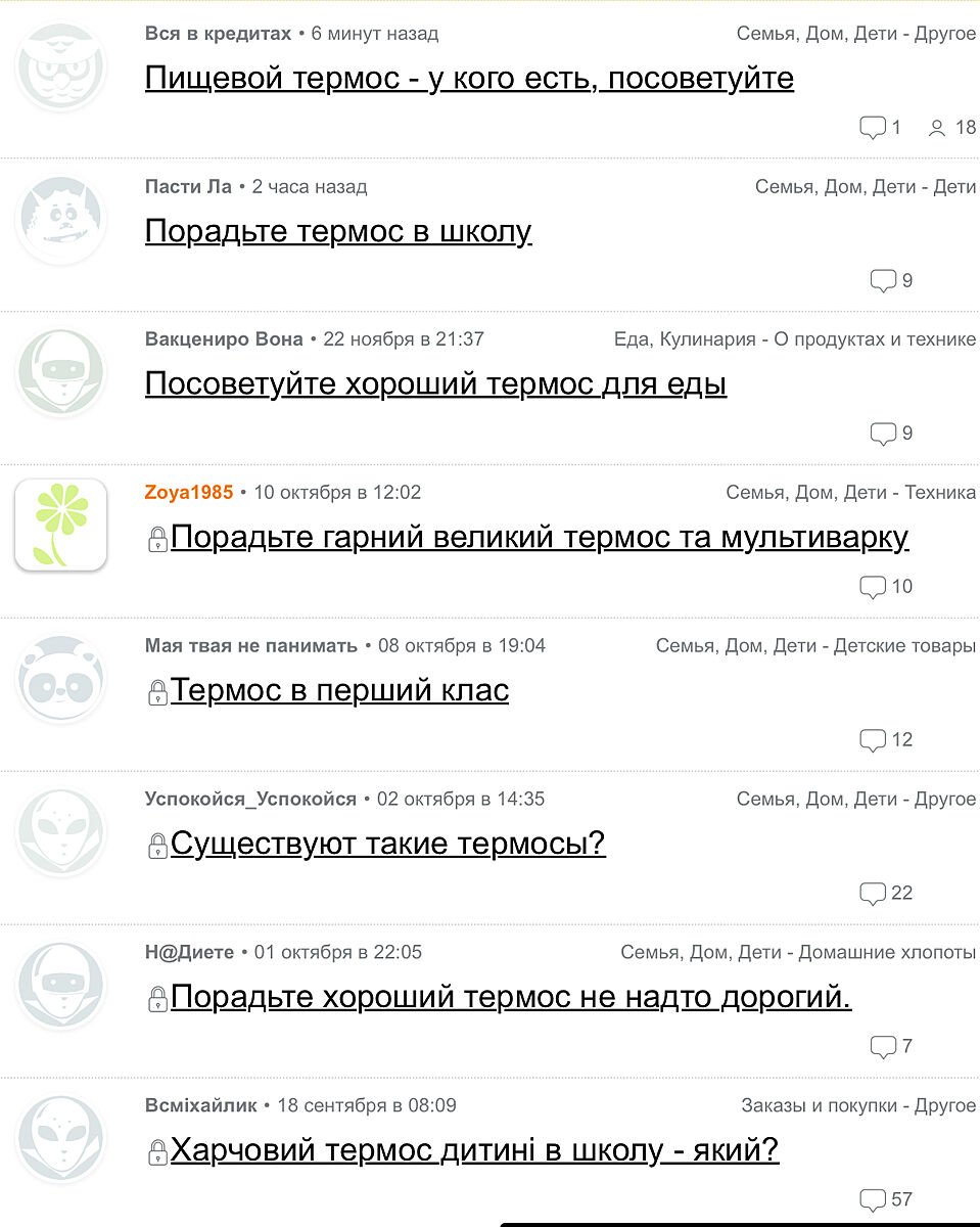 745 тем со словом термос. Ну гляньте, там же куча информации. Пару часов назад только про термос было.