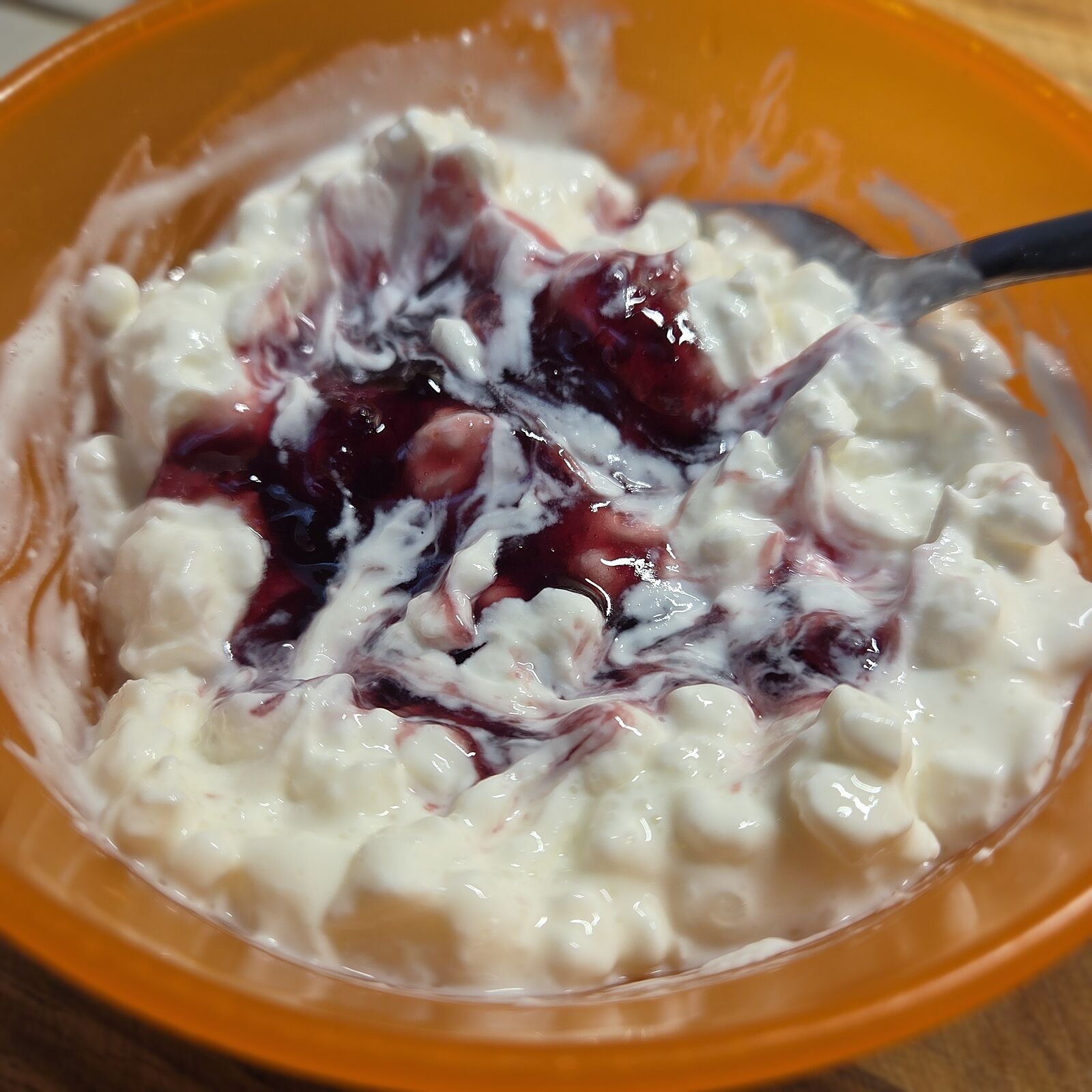 Творог с йогуртом и варенье без сахара , а что у вас?