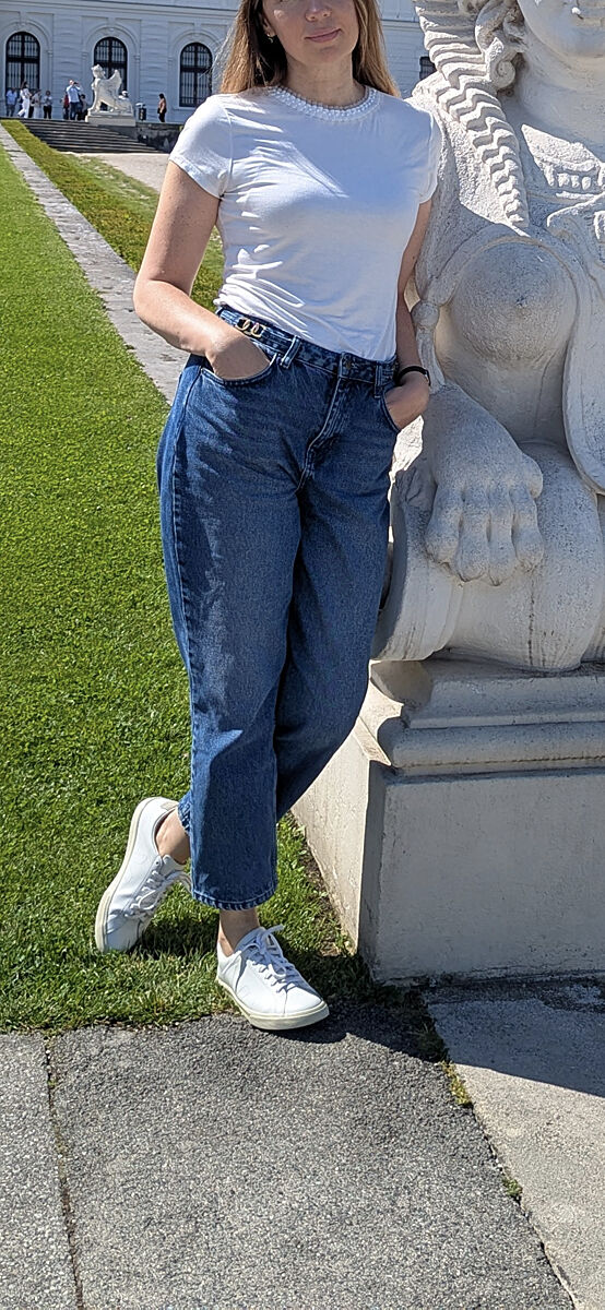 Сложно джинсы подобрать, много надо перемерить, прежде чем найдешь. Но когда была 58-60 кг, талия была 58, а бедра 101-103.. Тогда еще сложнее было.