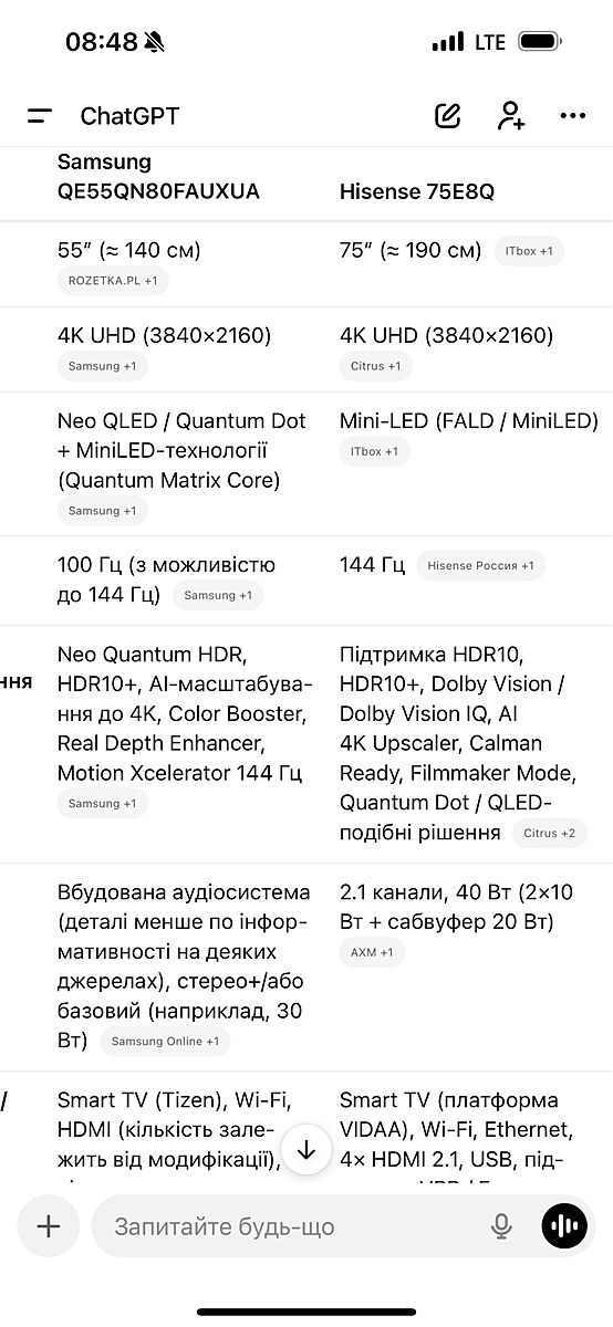 Я думала Телевізор Samsung QE55QN80FAUXUA або