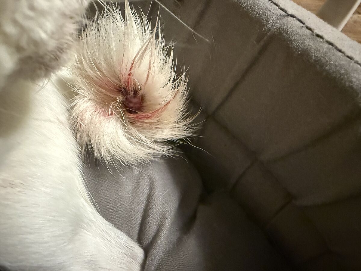 Ну или сбрить мех вокруг вавки, и залить бетадином, и пехахафтом замотать и пропитать бетадином