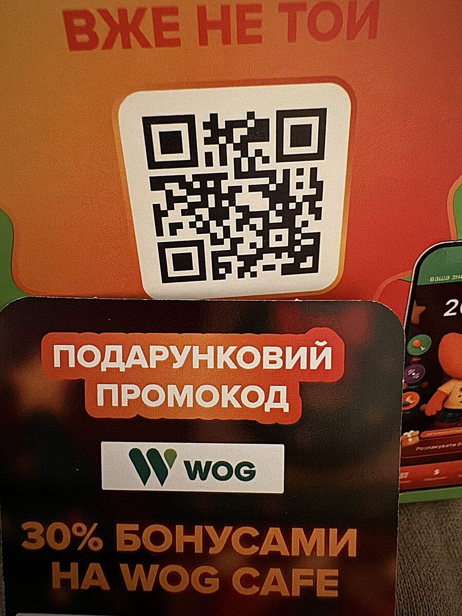 - 30% бонусами Wog cafe. 30% від вартості кави вже під час наступної покупки
