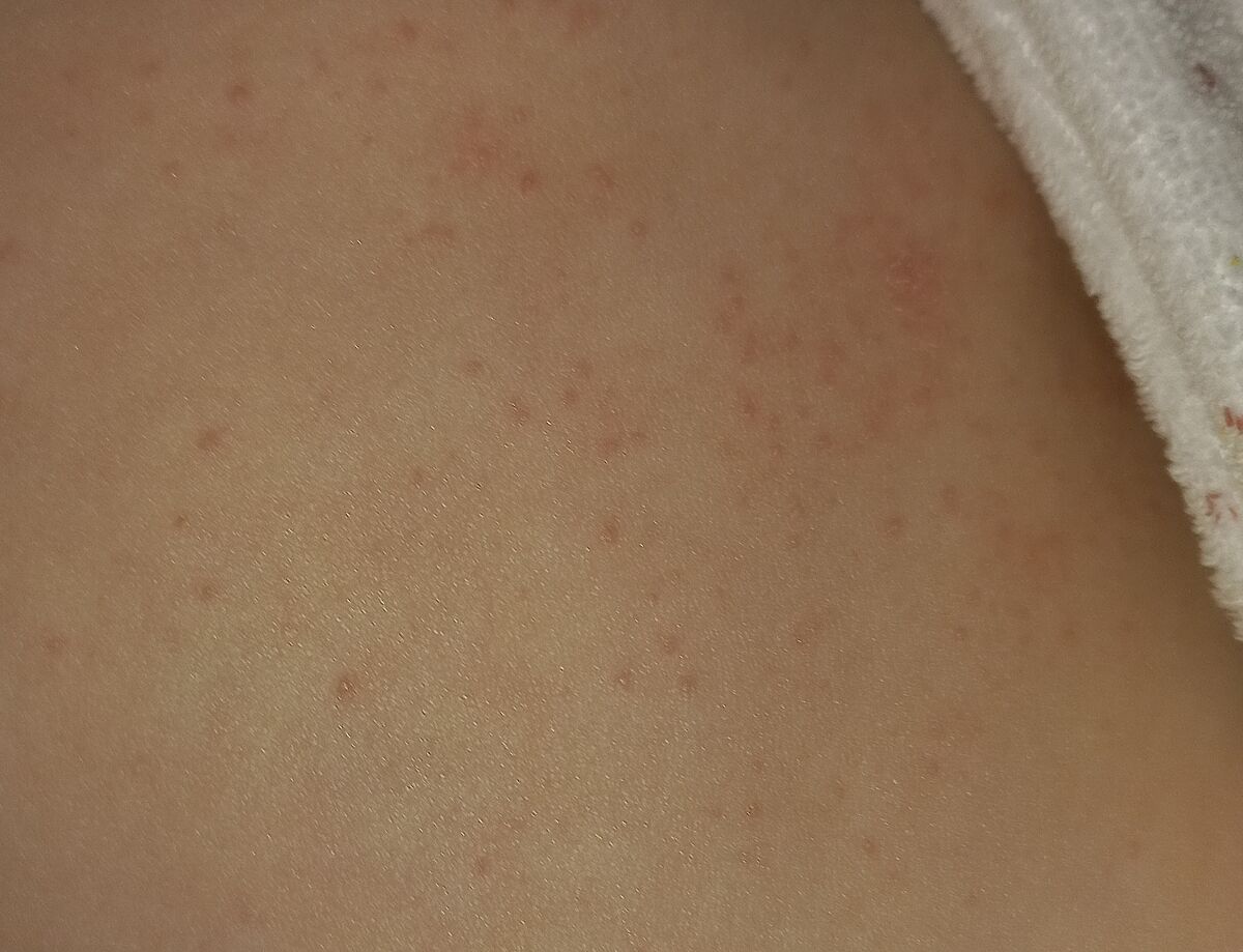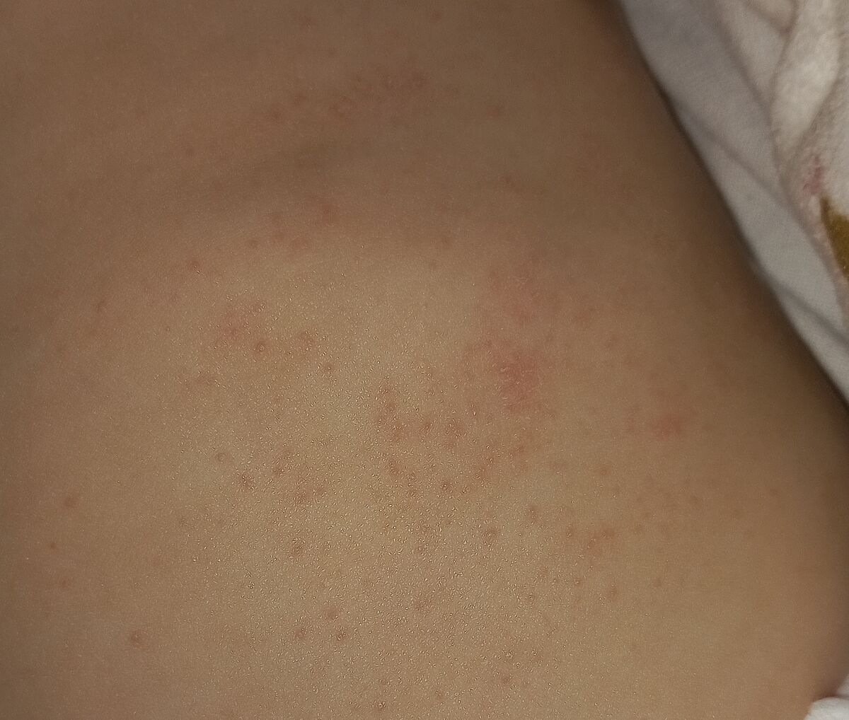 Малюку 6,5 місяців. В прикорм ввели гречану кашу на козячому молоці Мамако та вершкову злакову Kendamil. Через 3 дні висип на боках, особливо на лівому (фото додаю). Перші парк прищиків ге червоних помтила після того як дали