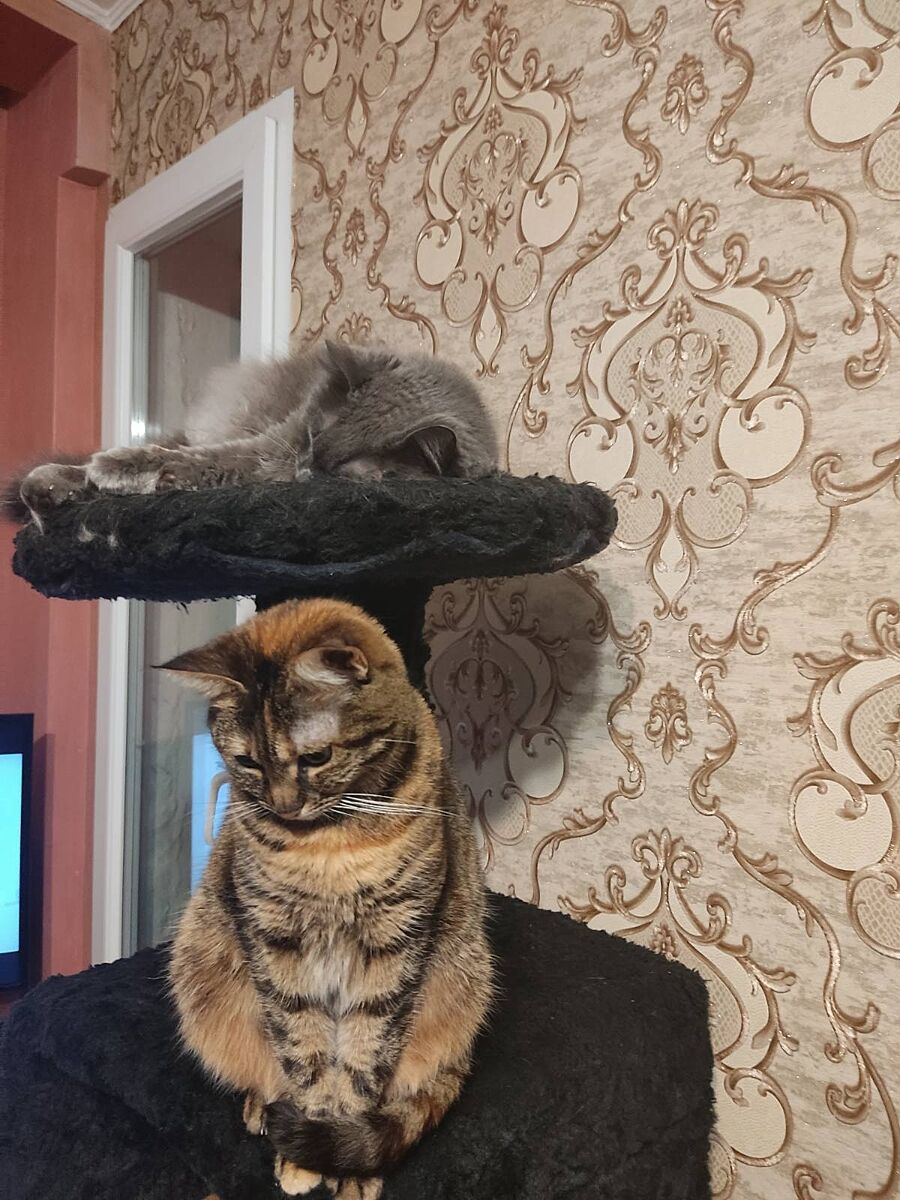 В мене були дві безпорідні кішки. Нічого поганого не можу сказати, добрі, охайні, чемні дівчинки. Та, що зараз незалежна, сама по собі, приходить до мене, тільки коли сама хоче. Перша була ручна ’мамина’ дівчинка. Дуже тактильна і ніжна.