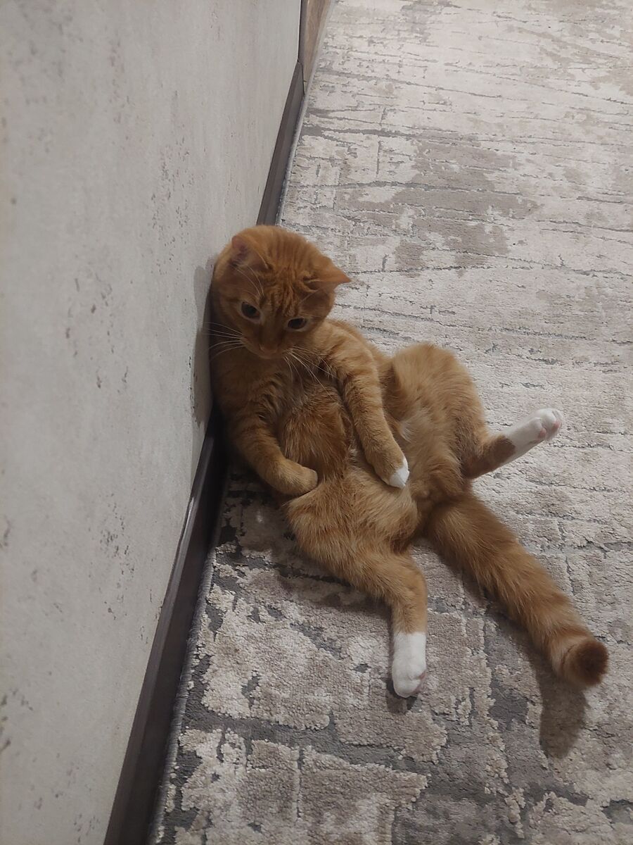Дворянін, попав до нас з однією блохою, не знаю що у нього там в голові, але я вже навіть читала про сказ, 3 рік, кастрований, міг би, то по потолку ходив, гладити його можна лиш в три ночі, коли він приходить до тебе на груди, урчить, як трахтор, вдень навіть погляд на нього не можна кинути, може псіханути і піти в іншу кімнату. Люблю цю рижу дупу