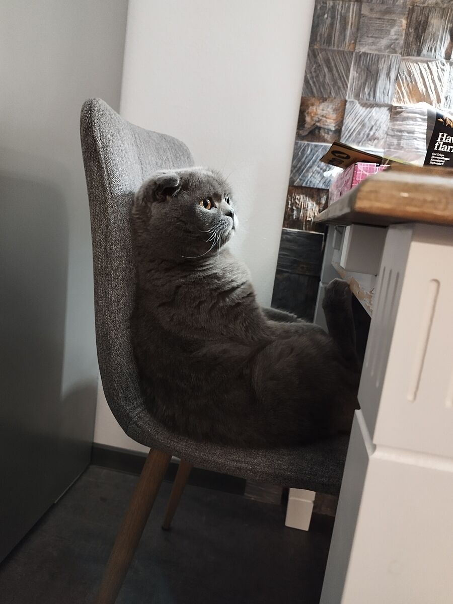 У нас шотландец, обожаю его, на руки не идёт, но постоянно ходит за мной как собака, гладиться не любит, не мурчит вообще,зато храпит ночью. Ничего не портит, ходит исключительно в лоток. Порода не общительная. Но он любимчик и красавец и знает об этом)