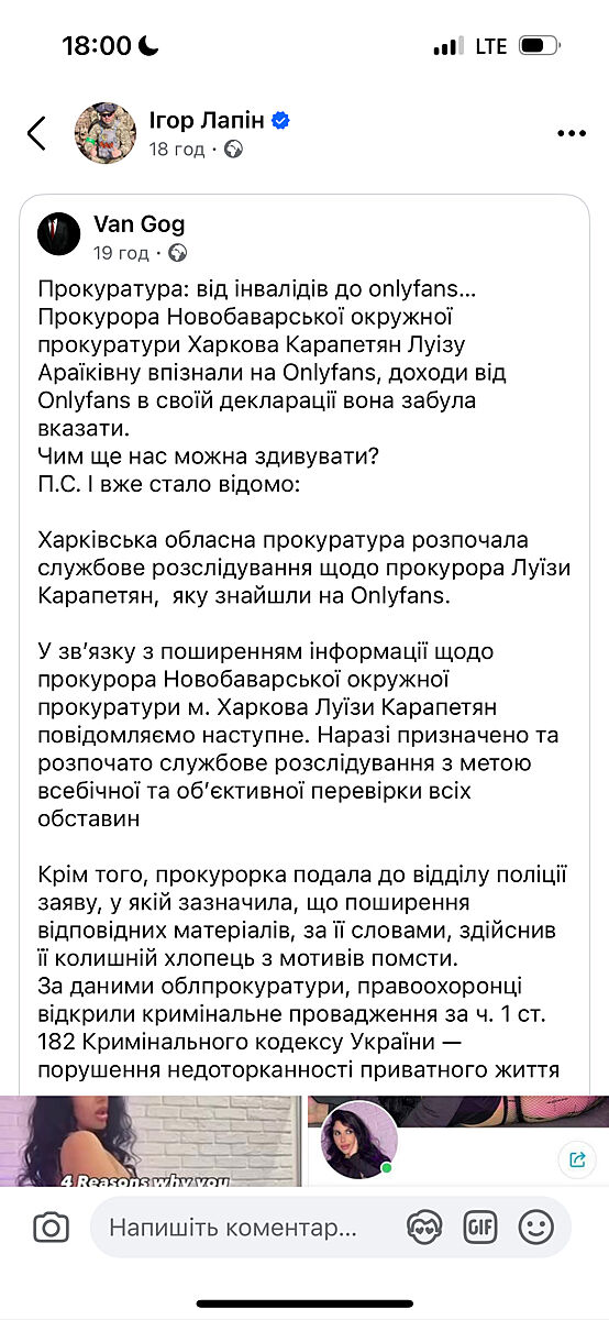 Разве не она сама «поширювала матеріали»? Или бывший от ее лица профиль завел и выкладывал интимные фотосессии без ее ведома?