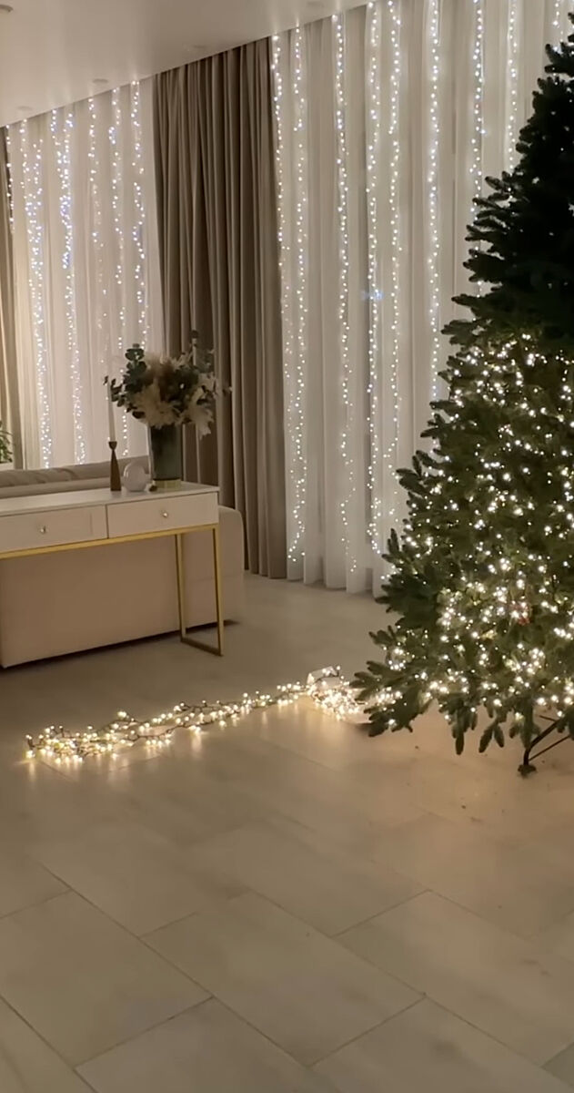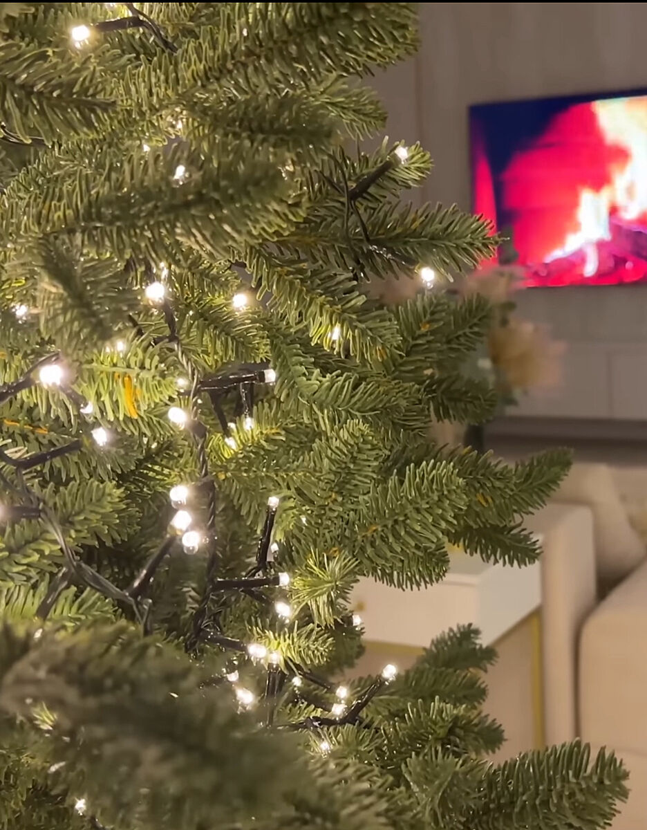 Выглядит как просто круглый шарик. Но думаю, что тут форма ведь не очень важна, главное длина гирлянды, чтобы обмотать каждую ветку. И цвет лучше теплый. И если будет выбор, лучше брать прозрачный провод. У меня он черный и без игрушек виден вблизи, не очень красиво.)