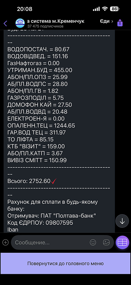 36 квадратов. Кременчуг. У меня нет слов, даже писать нет сил. Такая платёжка, как обухом по голове..