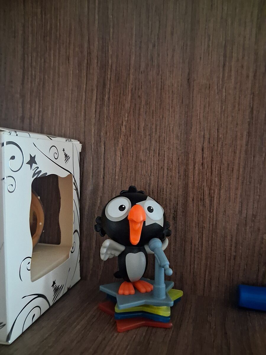 Это средний я так понимаю? В этом году не покупала, в прошлом году попалась птица на подставке с микрофоном. Игрушка красивая, качественная, но ничего особенного. Ну и больше стандартных в 2 раза