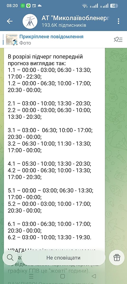 Миколаїв сьогодні майже всі підгрупи по 17 годин без світла сидить. І відключення по 7 годин підряд, потім 3 години з світлом, за ті 3 години нічого зарядитись не встигає.