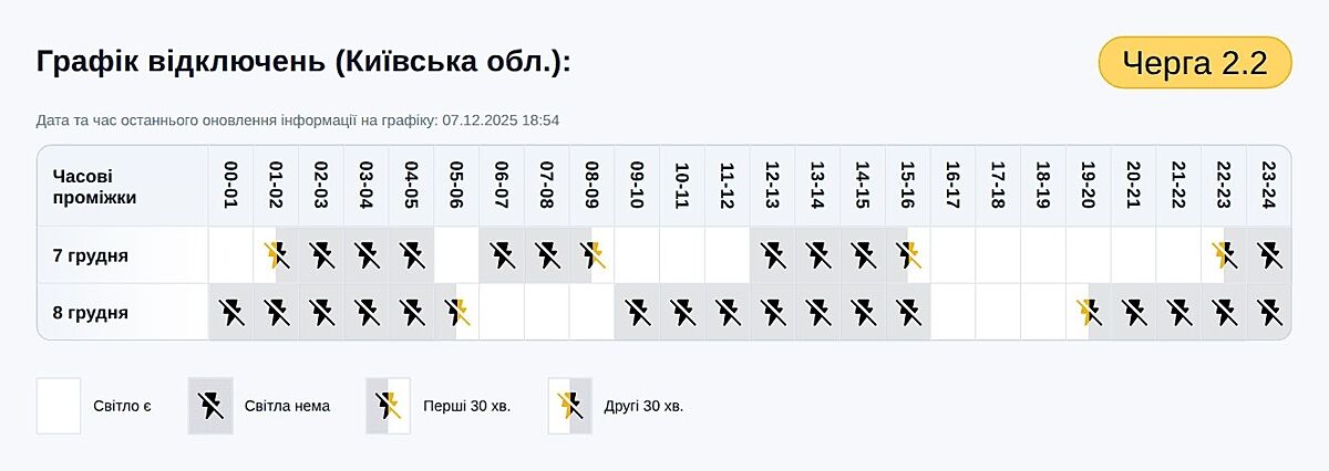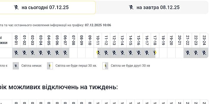 7 годин немає, 3 є. 17 годин без світла.