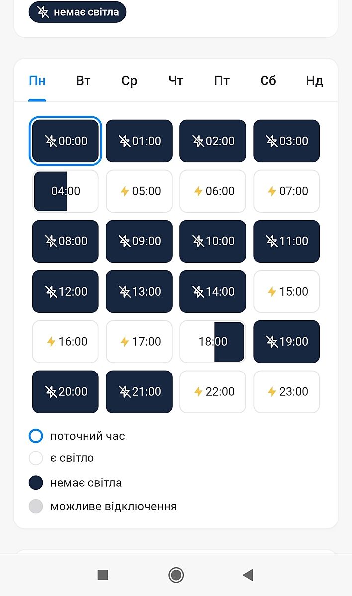 Хто більше. Не буде з 4.30 до 11.30. Був 3 години вдень. І все. 18 відключили о першій ночі включать. І так вже декілька днів поспіль