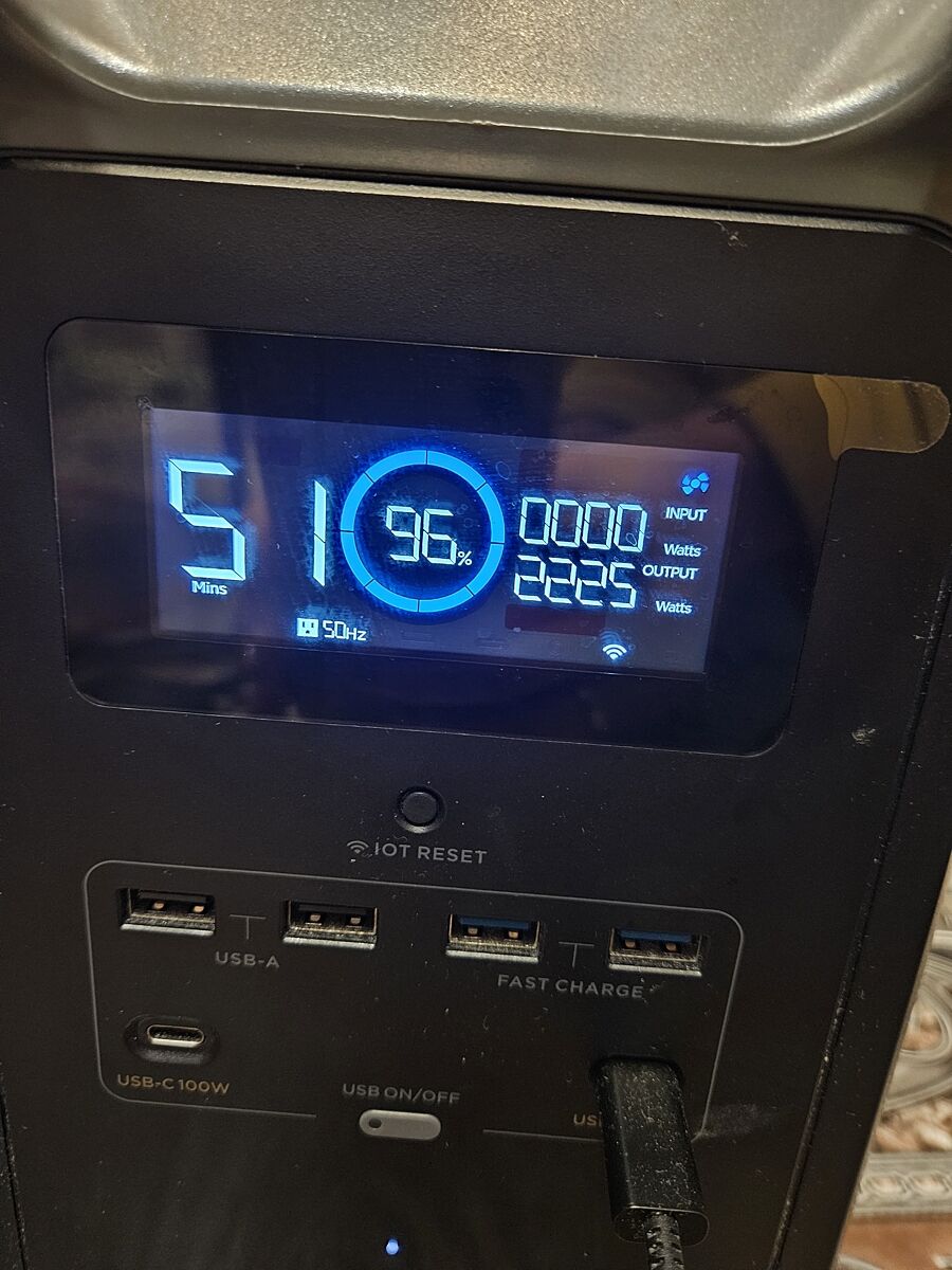 Вчера несколько раз работала микроволновка, несколько раз чайник, заряжался фонарь, телефон, часы и все время был подключен ноутбук, дочка еще играла в приставку и была подключена она и проектор.. Через 6 часов без света на станции оставалось еще 87 % 😅 вы где такую информацию нашли вобще? Экофлоу дельта Макс ) чайник тянет примерно 2200, если что ) микроволновка до 1500. Я и утюг включаю. Ничего не садит. И быстро заряжается