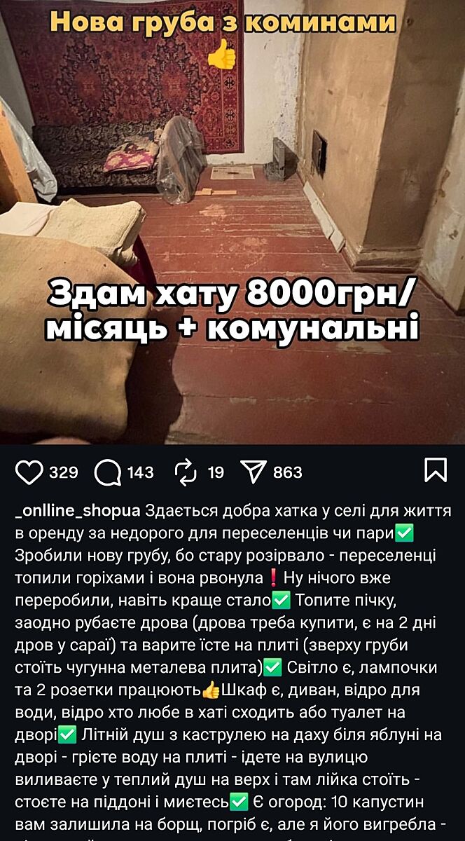 То Люда поїхала у Німеччину, а свою хату у Лідихові здає переселенцям, відверто написала, що топила горіхами і воно рвонуло