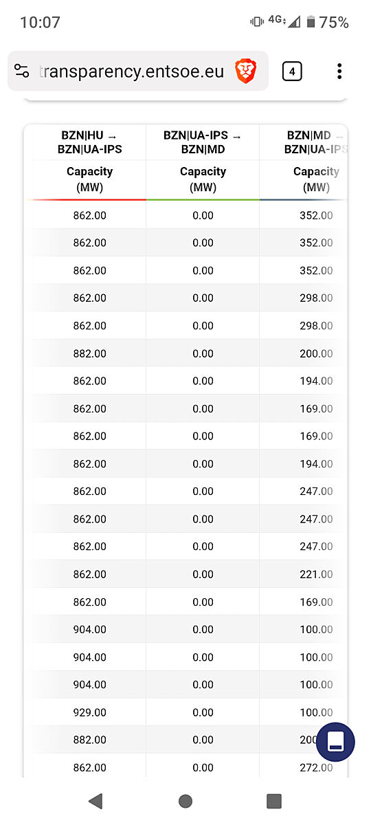 И что там по экспорту говорится? Скиньте пожалуйста Вашу информацию, так как на сейчас мы лишь берем с ЕС в размере 1500 МВт внутрь страны. Это по международному сайту ENTSO-E, энерготрафик.