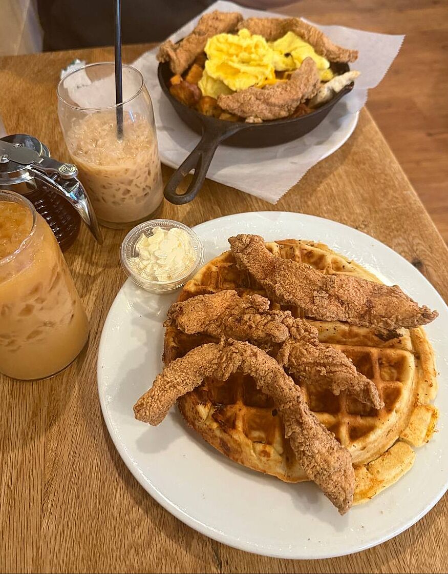 Нещодавно донька була в Атланті, там місцевий хіт - солодкі вафлі з смаженою куркою, рибою або морепродуктами, їх ще й поливають солодким сиропом з медом та гірчицею. Так от донька була в захваті, казала, що смачно. Тепер вдома теж так само готує.