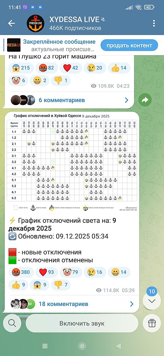 Одесса,график на сегодня. По плану должно было быть 7.5 часов со светом в сутки в группе 4.1...Но ввели экстренные отключения.... Свет уже не ждём, а вообще у дтека явные проблемы с пониманием равномерного отключения.