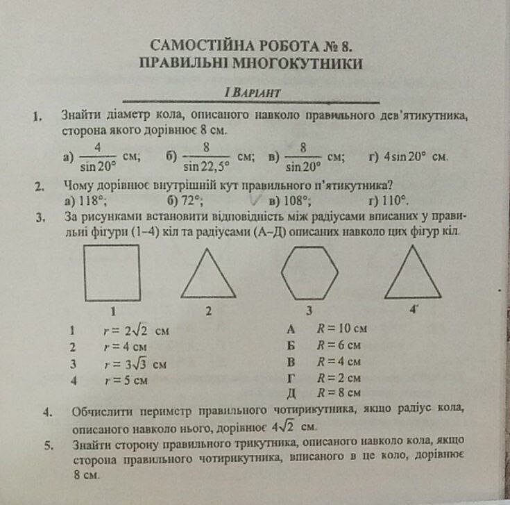 Правильні многокутники 2, 3, 4 варіант.