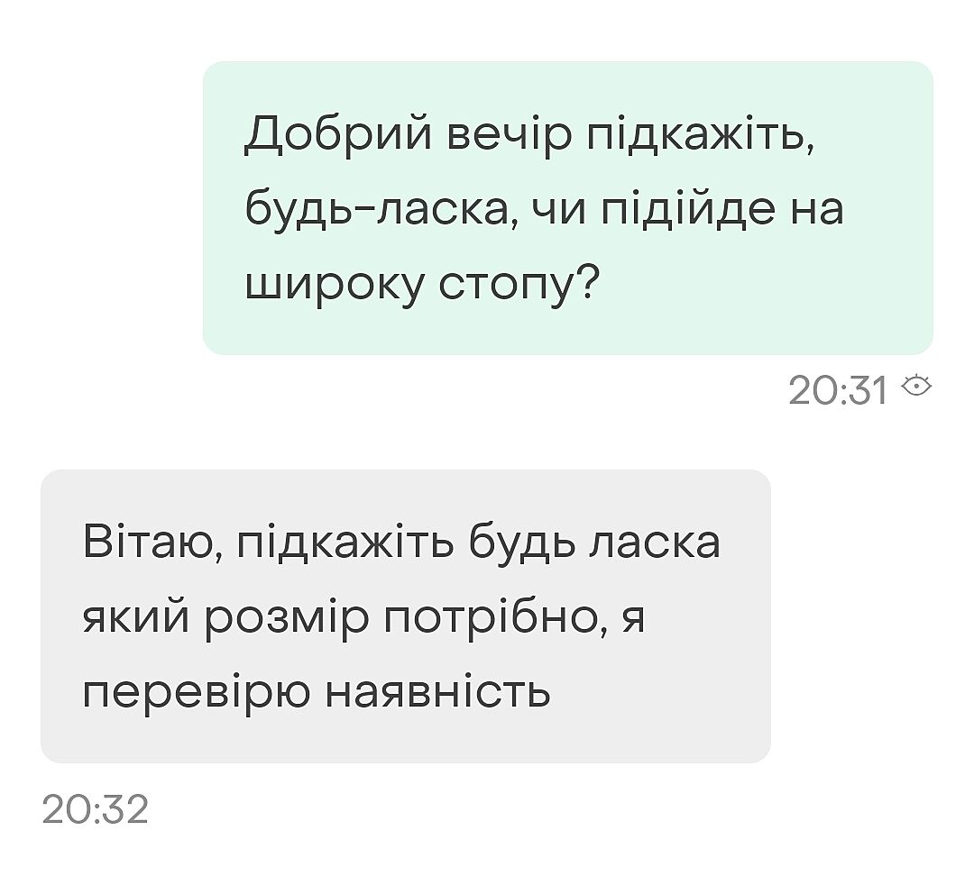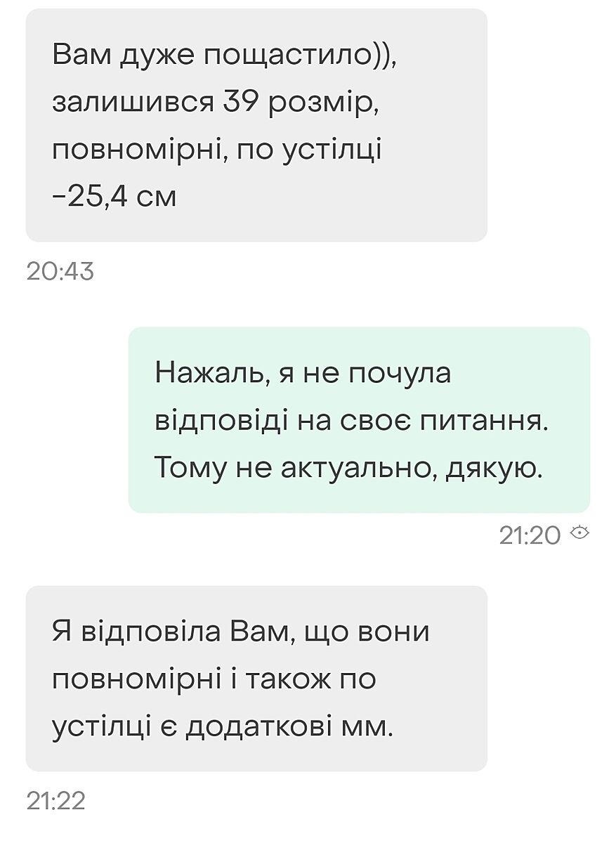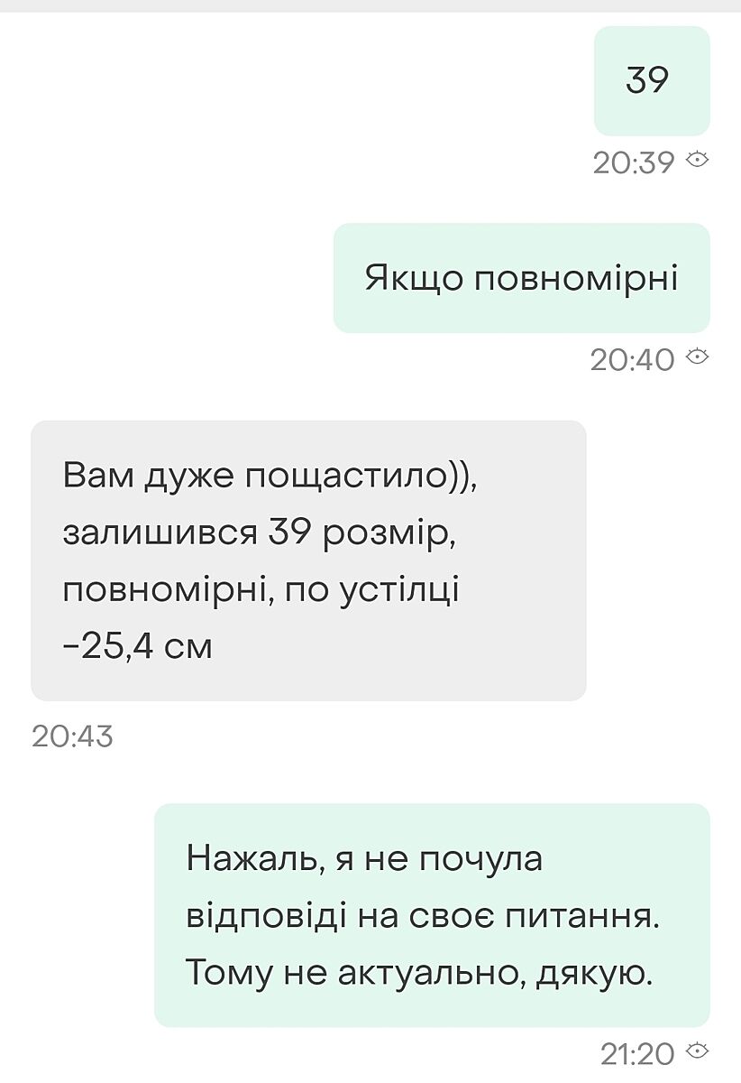 Раз пішла така тема, дівчата гляньте, то може я неадекват покупець також? Мені здається продавець не розуміє різниці між повнотою взуття та повномірним розміром по см