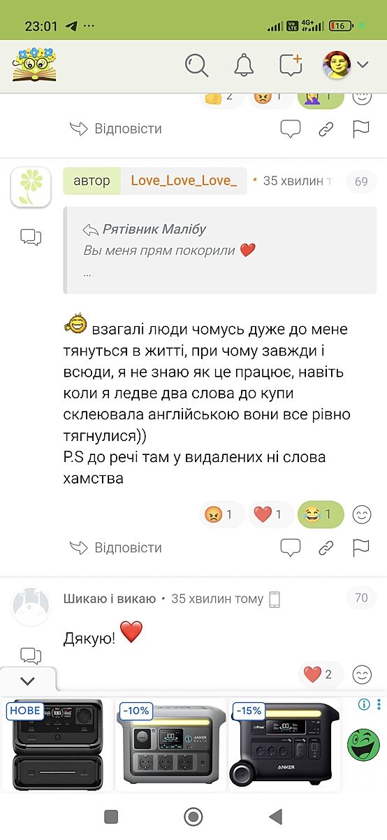 теперь в любой ее теме всегда появляется какой-то 1 аноним который ей пишет комплиментарный и подмазывающий коммент. Это ее акк-клон. Завела чтоб хоть типа ‘кто-то’ подгавкнул ей в теме. Раздвоение личности. Пациент еще больше уходит в патологию