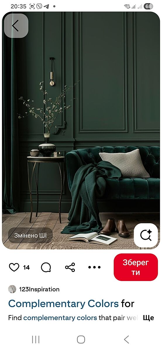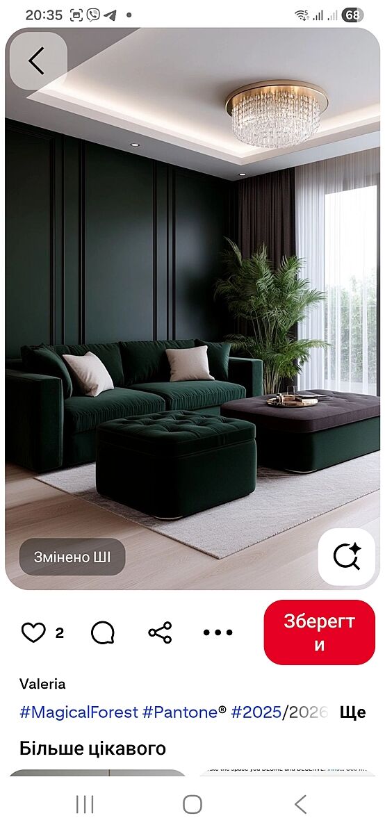 Для меня цвет выглядит мрачно и нагружающе, что в старпосте, что на фото в теме. Сразу съедает пространство. Я сама думала о зеленых обоях, а теперь вижу, что вряд ли куплю