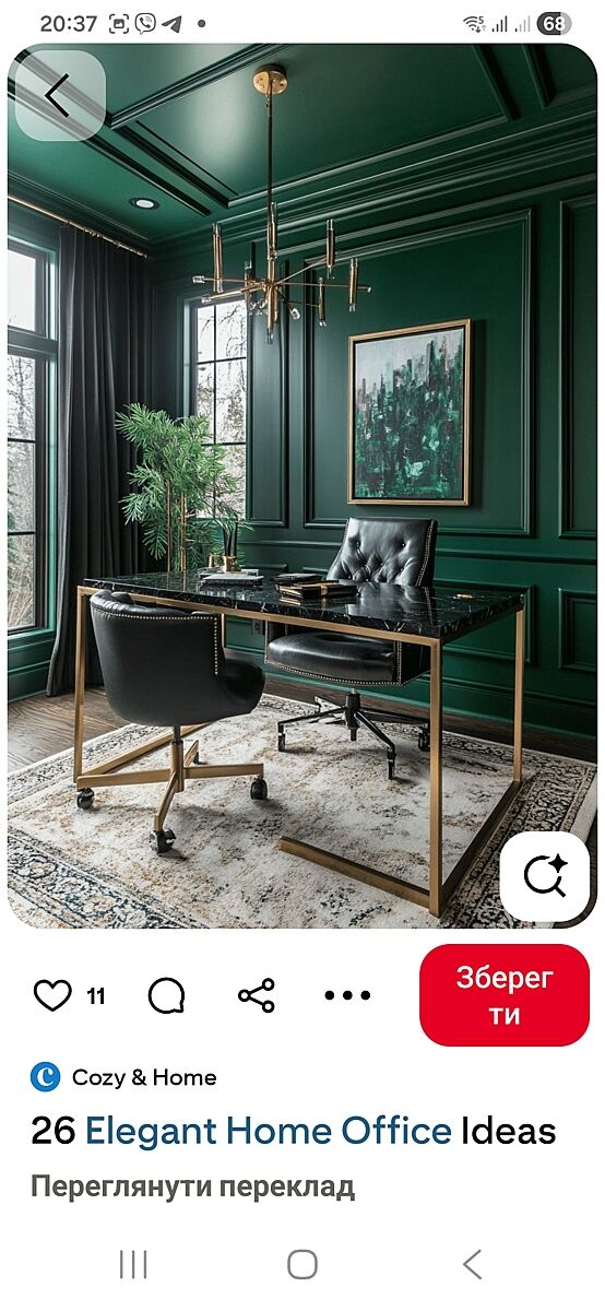 Гарний колір, особливо гарне поєднання з висвітленною підлогою. Я тут по Пінтересту прогулялась. З таким кольором треба дуже уважно підібрати все інше, щоб було гармонійно.