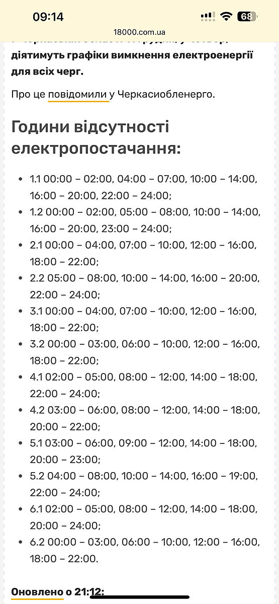 Я глянула у Івано Франківську ц Рівному максимум 3 години за всю добу вимикають. Але про Чернівці писали, що так як і в Черкасах, по 17-18 годин нема світла. Я з Черкас, якщо що. Тут жах зі світлом