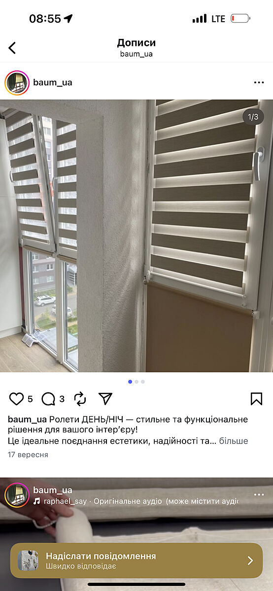 В нас римська штора 2 в 1 (тюль і штора). Дуже зручно.