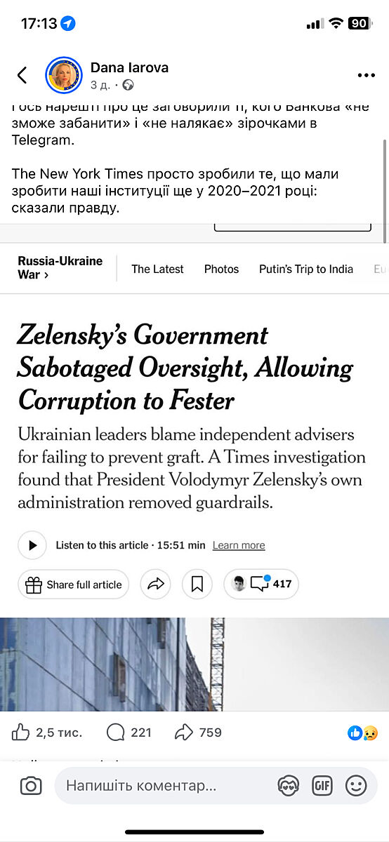 The New York Times сьогодні фактично озвучили те, про що в Україні давно думали, але про що постійно «не можна було казати вголос».