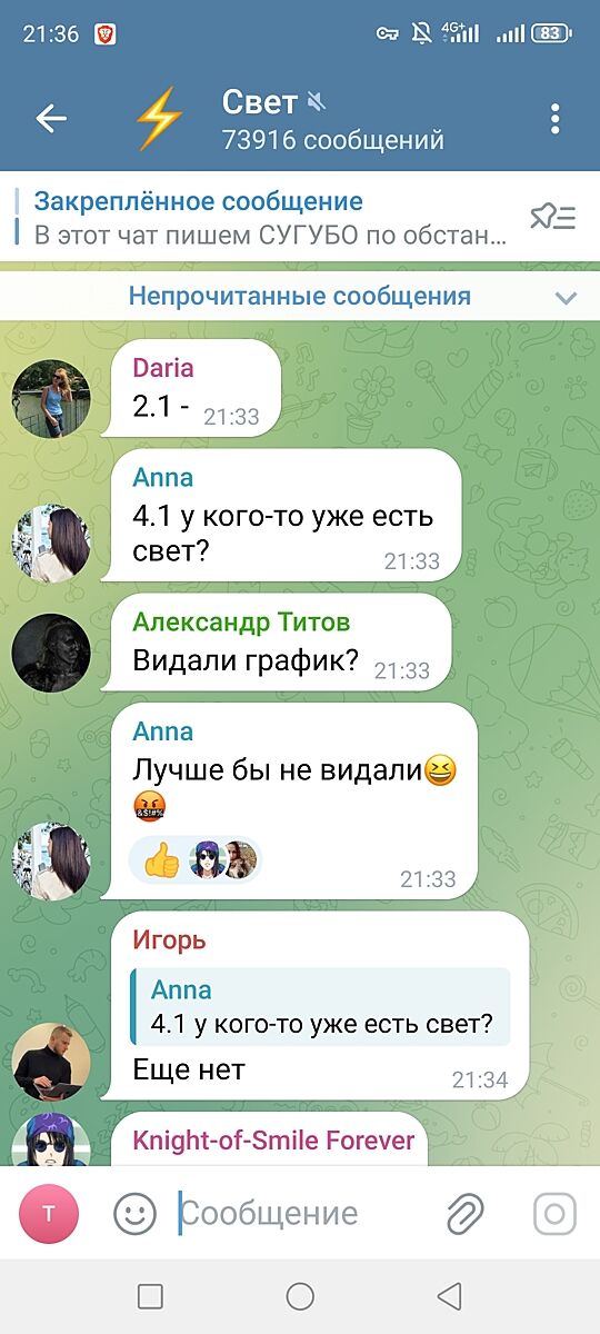 Так посмотрите выше девочки сбросила. Там света нет по 10-12 часов, а у нас его по 16 нету. Или 4-6 часов то такое мелочи ??