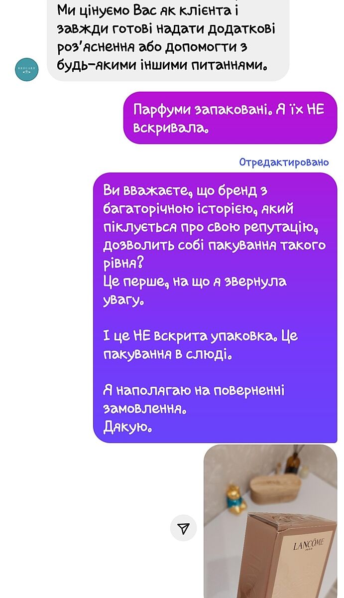 Я тоже не знала, что нельзя вернуть запакованную парфюмерию.
