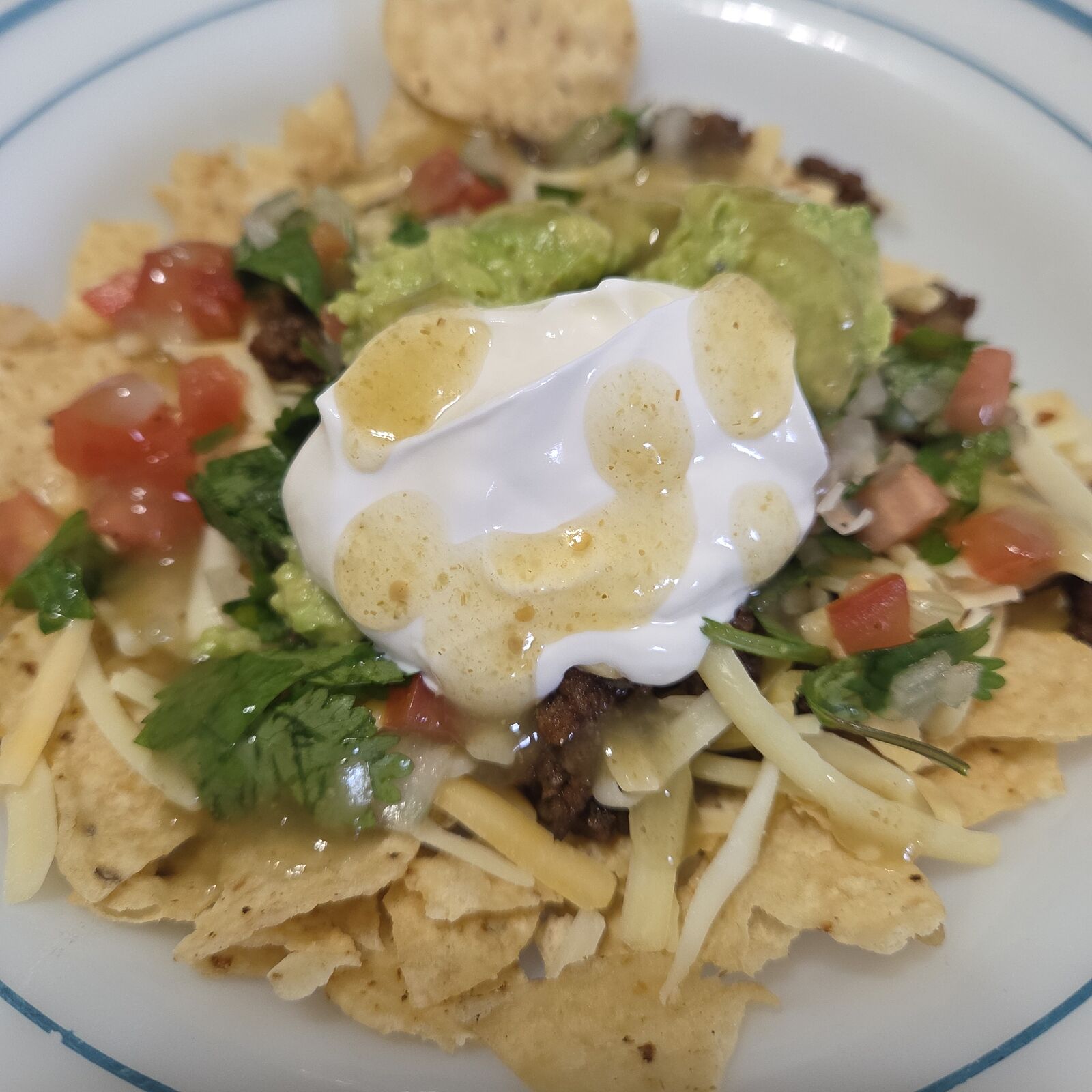Кукурузные чипсы,жареное мясо,пико де гайо,сыр,сметана,гвакомоле 🤩