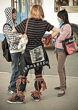 У нас в городе (Днепропетровске) сейчас правый сектор во главе с Ярошем свой штаб устроил (после того, как им из Киева пришлось убраться, когда один из их отморозков случайненько так, по пьяни ранил троих человек в центре города). А у нас в машине уже несколько лет подряд весит георгиевская ленточка в память о моем дедушке-ветеране и я ее снимать принципиально не собираюсь, хотя понимаю, что его отряды, которые ходят у нас по городу в камуфляже и с дубинками, типа порядок охраняя, могут нам и лобовое стекло разбить. А бандеровщина вернулась - те же предатели ходят за своим народом же следят.