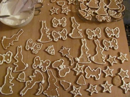 Девочки, сделала имбирны николайчики. Такие вкусные, хрустяшие, ну и с сыном трохи разрисовали:) Правда руки у нас не из того места, как есть:) Завтра угостит друзей в школе:)