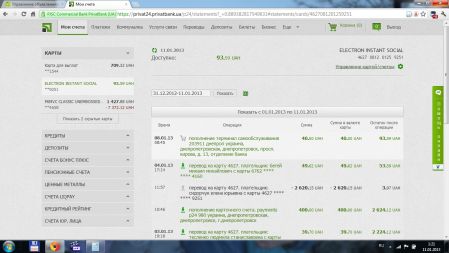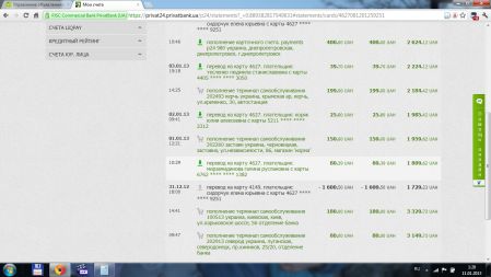 Выставляю скрины по моей карте, с движением средств...