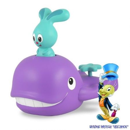 Забавная музыкальная игрушка-кит с очаровательным кроликом Бани превратит купание в увлекательную игру! Когда ребенок поместит игрушку на воду, то сможет увидеть, как Бани плавает верхом на ките и поёт малышу песенки. По мере наполнения игрушки водой она погружается в воду, и Бани издает забавные звуки. Поднимите кита над водой и опустите обратно, и вы услышите звуки брызг. Если нажать на кнопку на хвосте кита, из его головы будет бить настоящий фонтан! Игрушка имеет функцию автоматического отключения для экономии заряда батарей.