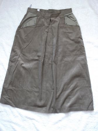 2, 3 Юбка, цвет хаки, вельветовая, длинная. ПОТ 37, ПОБ 55, длина 75. Из дефектов: в кармане немного разлезся шов.