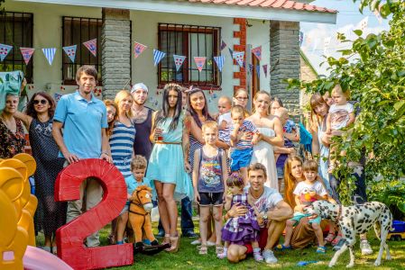 Кроме того для хороших фоток важно что бы основные участники фотосъемки были одеты в одном стиле - ну к прмиеру папа-мама-дочка все в светлых футболочках и все темных в джинсиках (к примеру). А у вас везде разнобой - тот в на каблуках 15 см, тот в кроксах, тот в джинсах, тот в ну почти вечернем платье. Везде разбросаны какието вещи-игрушки загромождающие кадр.