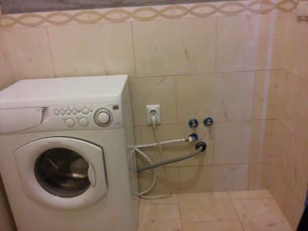 В проеме справа выглядывает ванная, а на фото №5 ванная комната внутри. Возле стир.машинки будет стоять тумба и все будет накрыто столешницей с раковиной а на стене большое зеркало и по бокам светильники.